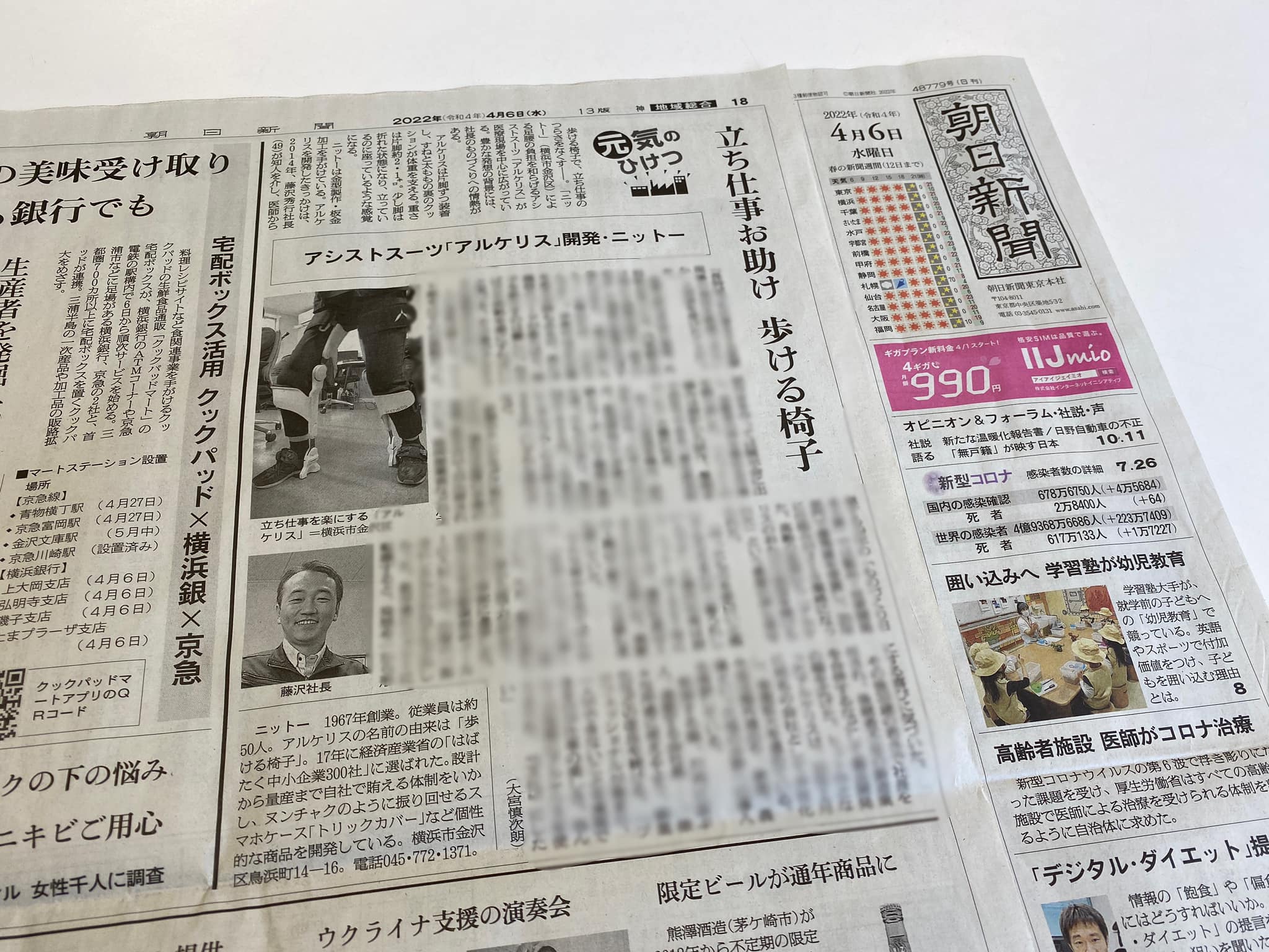 2022年4月6日発行の『朝日新聞』(神奈川県)で紹介されました。 【元気のひけつ】立ち仕事お助け、歩ける椅子 足腰の負担を和らげるアシストスーツ「アルケリス」が医... -